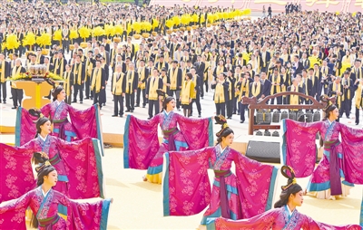 社会各界代表及近百家新闻媒体5000余人在现场参加大典。图片由本报记者马健徐宗福拍摄。