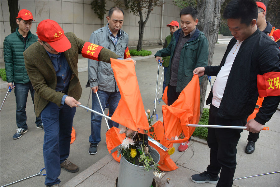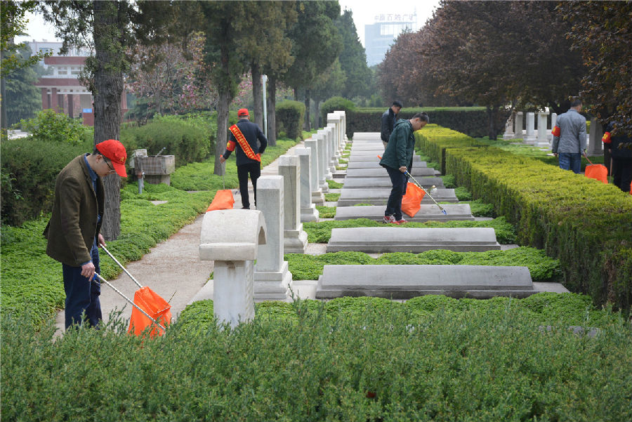 三、开展“倡议文明缅怀,减少废弃污染”拾捡垃圾志愿服务活动。缅怀先烈活动结束后,市建投公司志愿者们在烈士陵园内开展“倡议文明缅怀,减少废弃污染”拾捡垃圾志愿服务活动。每位志愿者都手持垃圾钳,认真将散落在纪念碑前以及隐藏在杂草中的废弃鲜花、饮料瓶、纸张等垃圾拾捡起来放入提前准备好的垃圾袋中。活动持续一个小时,志愿者们在祭奠先烈的同时以自己的实际行动表达崇敬之情,并倡导以献一束花、敬一杯酒、植一棵树、清扫墓碑等方式寄托哀思,将祭拜逝者的传统习俗以更加环保、健康、安全、文明的方式表达,营造文明祭祀的良好氛围。